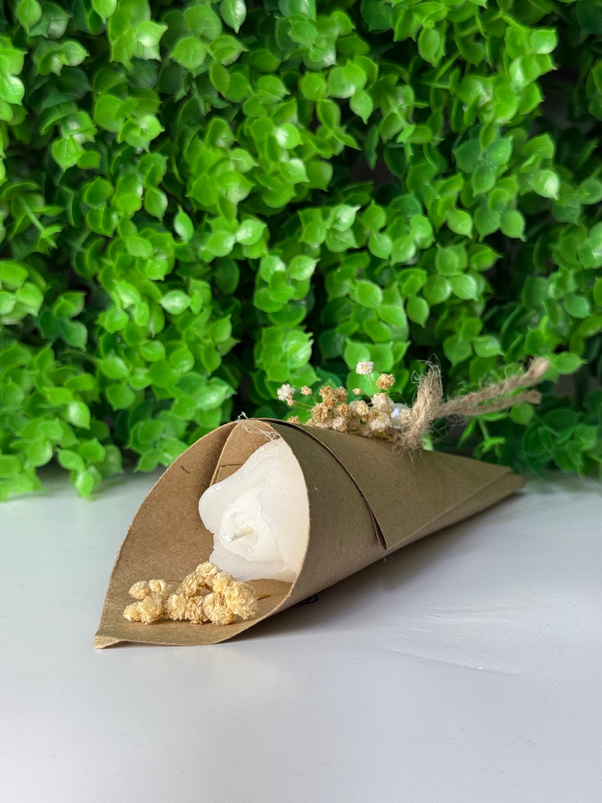 Kraft Külah Ambalajlı Dekoratif Beyaz Gonca Gül Mum