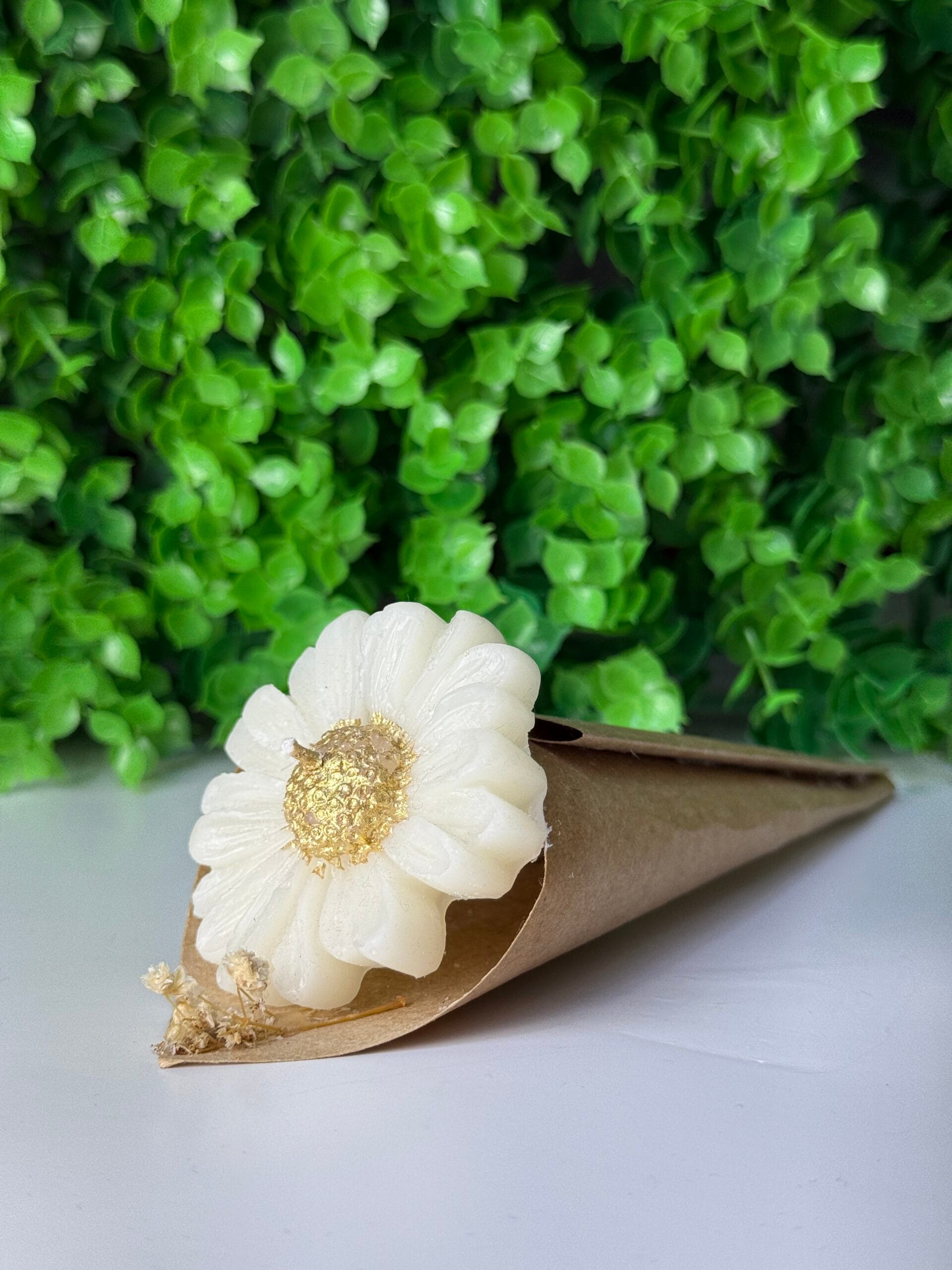 Kraft Külah Ambalajlı Gold Göbekli Dekoratif Papatya Mum