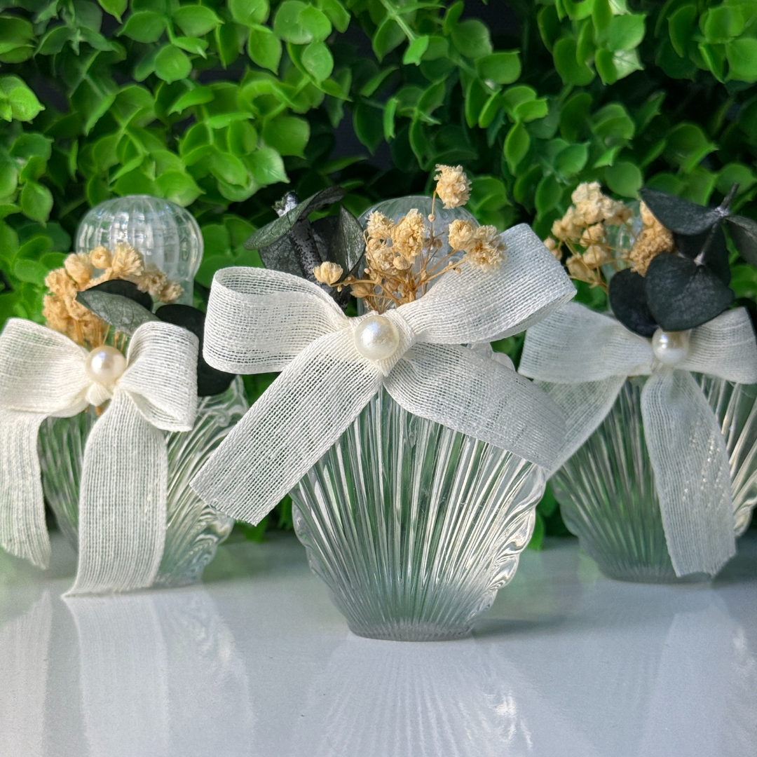 Okaliptüs ve İnci Süslemeli Deniz Kabuğu Tasarımlı Hediyelik Kolonya